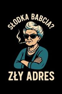 Duży, czytelny napis „Słodka babcia? Zły adres” jasno komunikuje charakter koszulki – to projekt dla babci z pazurem, dystansem do siebie i silną osobowością. Motyw graficzny i tekst idealnie się uzupełniają, tworząc koszulkę z humorem, ironią i odrobiną buntu.