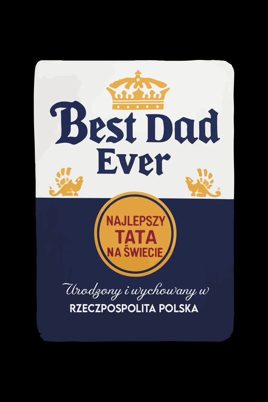 Ten projekt to wyraźne nawiązanie do ikonicznej estetyki Corony – jasne tło, granatowo-złote detale oraz charakterystyczna korona budują skojarzenia z jakością premium, spokojem i celebracją codziennych chwil. W centrum znajduje się hasło „Best Dad Ever”, uzupełnione o polski akcent „Najlepszy Tata na Świecie”, który nadaje koszulce osobisty i rodzinny wymiar.