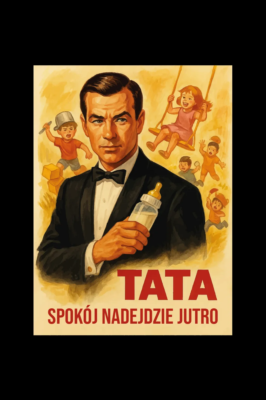 Ten projekt to popkulturowy hołd dla ikonicznej estetyki Jamesa Bonda, przeniesionej w realia rodzicielstwa. Tata został tu pokazany jak prawdziwy agent do zadań specjalnych – w eleganckim stroju, z kamiennym spokojem na twarzy i absolutną kontrolą nad sytuacją. Kontrastuje z tym dynamiczne tło pełne dziecięcego chaosu, które wygląda jak scena akcji z filmu… tylko że dzieje się w domu.
