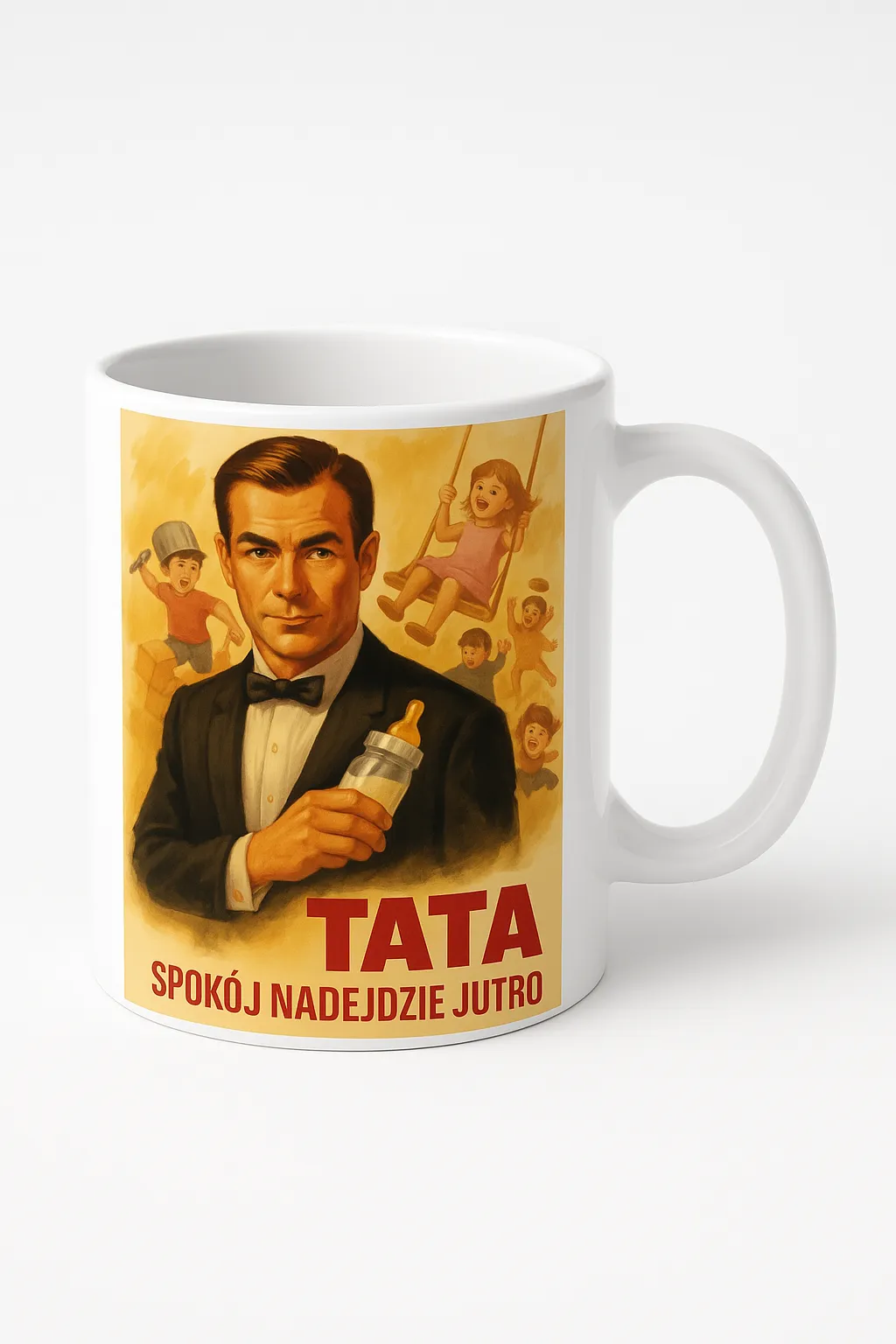 Ten kubek to idealne połączenie elegancji, humoru i codziennej prawdy o ojcostwie. Grafika inspirowana stylem Jamesa Bonda przedstawia tatę jak agenta 007 – opanowanego, stylowego i zawsze gotowego na kolejną misję. Zamiast pistoletu w dłoni trzyma jednak… butelkę dla dziecka, bo to właśnie tu zaczynają się prawdziwe zadania specjalne.