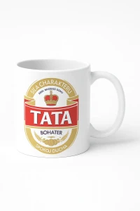 Ten kubek to klasyczne, bardzo czytelne nawiązanie do etykiety piwa Tyskie – charakterystyczna tarcza, korona i złoto-czerwona kolorystyka od razu budzą skojarzenia z solidnością i tradycją. W centrum znajduje się jedno słowo: TATA, bo tu nie chodzi o markę, tylko o prawdziwy autorytet.