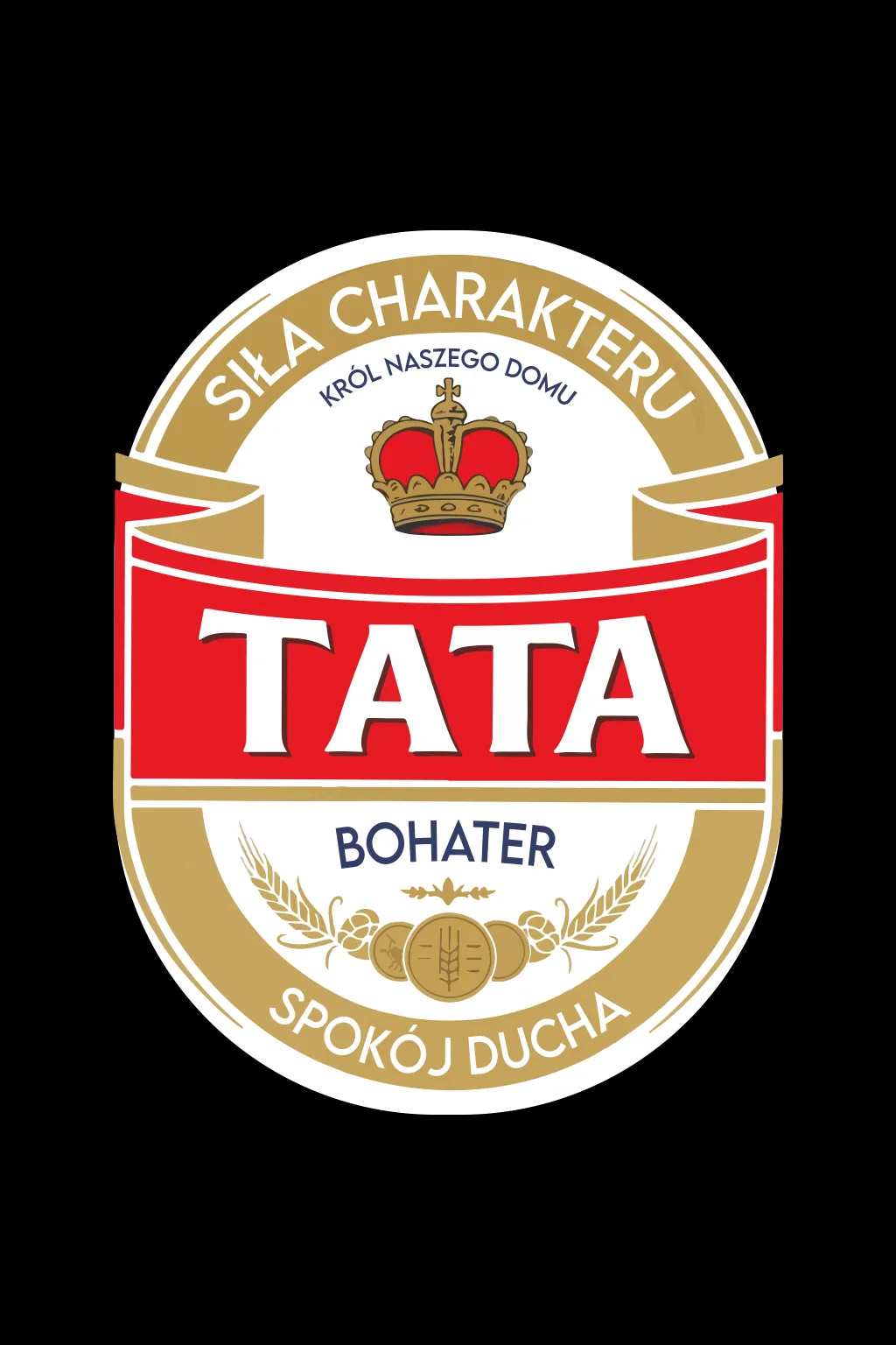 Ten projekt to hołd dla kultowego stylu Tyskiego – jednego z najbardziej rozpoznawalnych piwnych wzorów w Polsce. Klasyczna tarcza, korona, złote detale i mocna typografia tworzą wrażenie stabilności, jakości i doświadczenia. W tej wersji wszystko kręci się wokół jednej postaci: TATY, opisanego słowami, które mówią więcej niż długi tekst – siła charakteru, król naszego domu, bohater, spokój ducha.