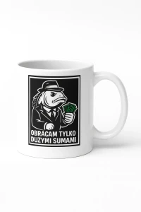 Ten kubek powstał dla wędkarzy, którzy myślą kategoriami „grubej ryby” – dosłownie i w przenośni. Hasło „obracam tylko dużymi sumami” to błyskotliwa gra słów, która rozbawi każdego fana wędkarstwa, a grafika gangsterskiego suma w garniturze tylko wzmacnia przekaz. To boss wód i finansów w jednym – spokojny, pewny siebie i zawsze na poziomie.