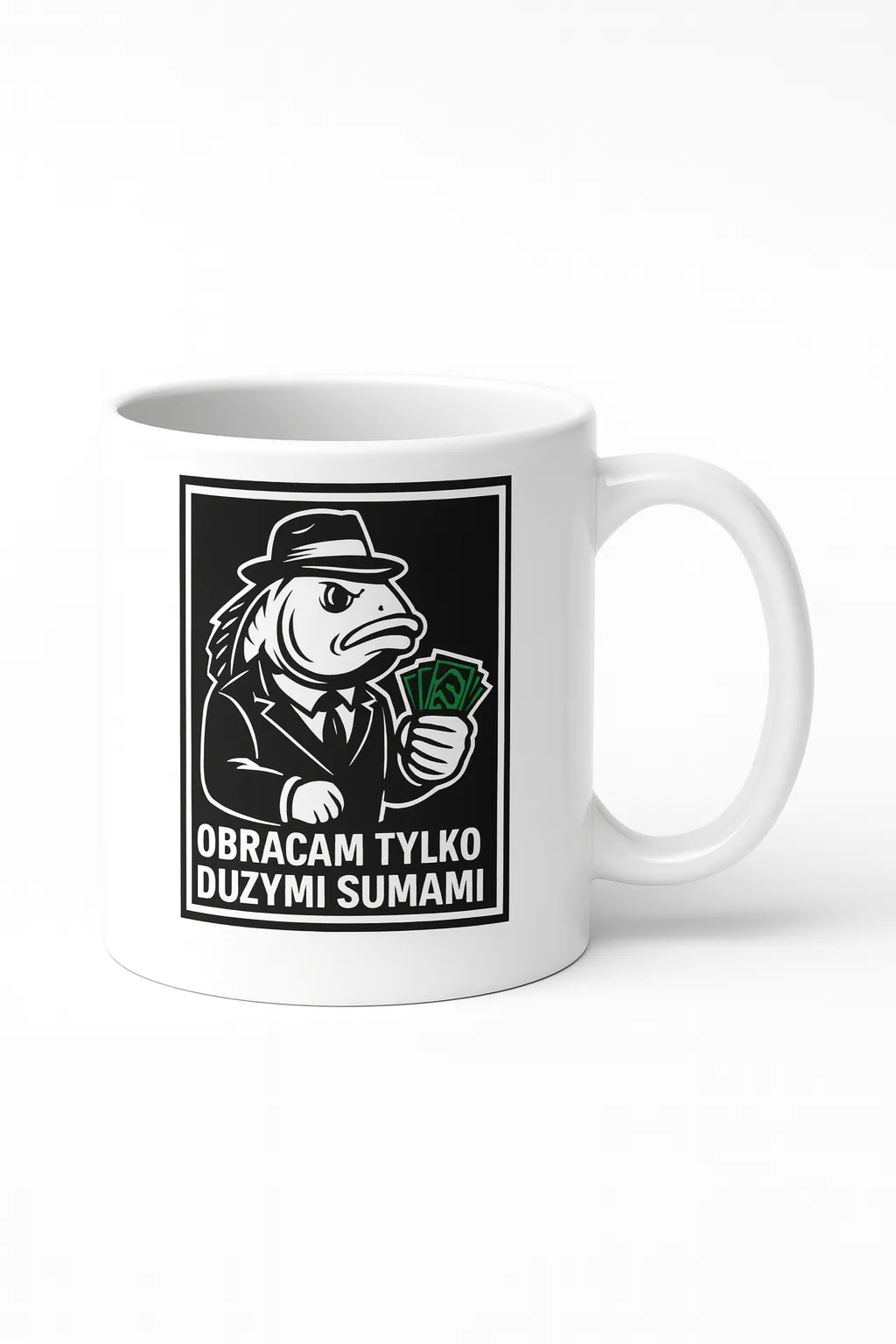 Idealne połączenie wędkarskiego humoru i mafijnego klimatu. Ten kubek jasno mówi: nie interesują Cię płotki – Ty obracasz tylko dużymi sumami. Dosłownie i w przenośni! Ryba w garniturze, z gotówką w płetwie i spojrzeniem pełnym respektu robi wrażenie przy każdym łyku kawy.